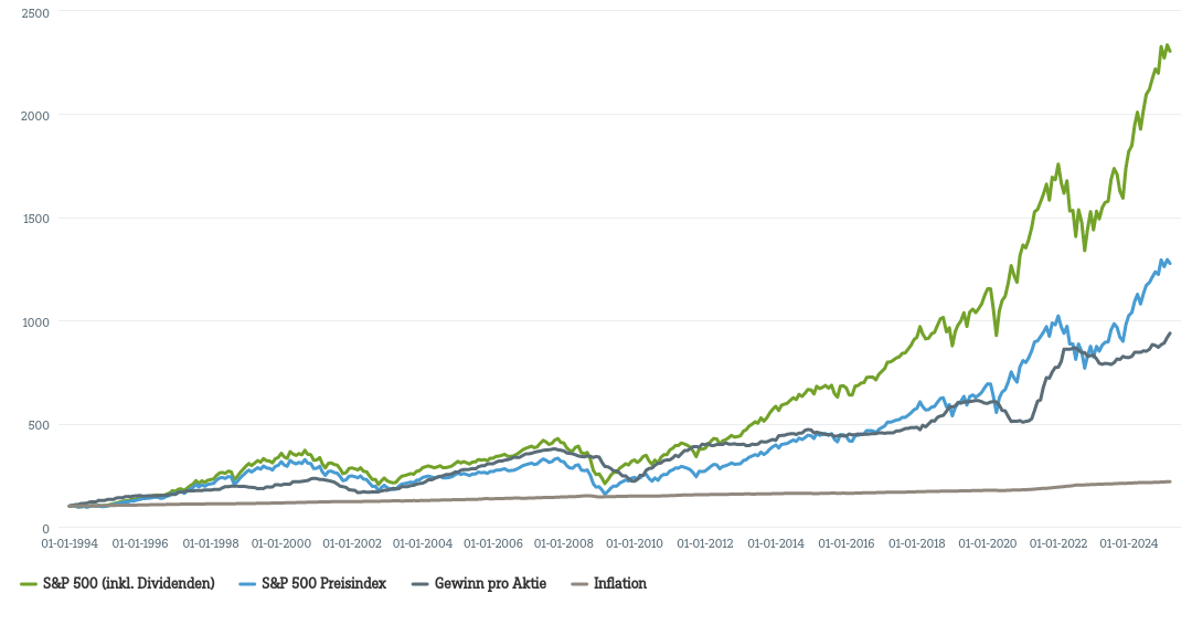 Wert- und Gewinnentwicklung S&P 500-Index und US-Inflation
